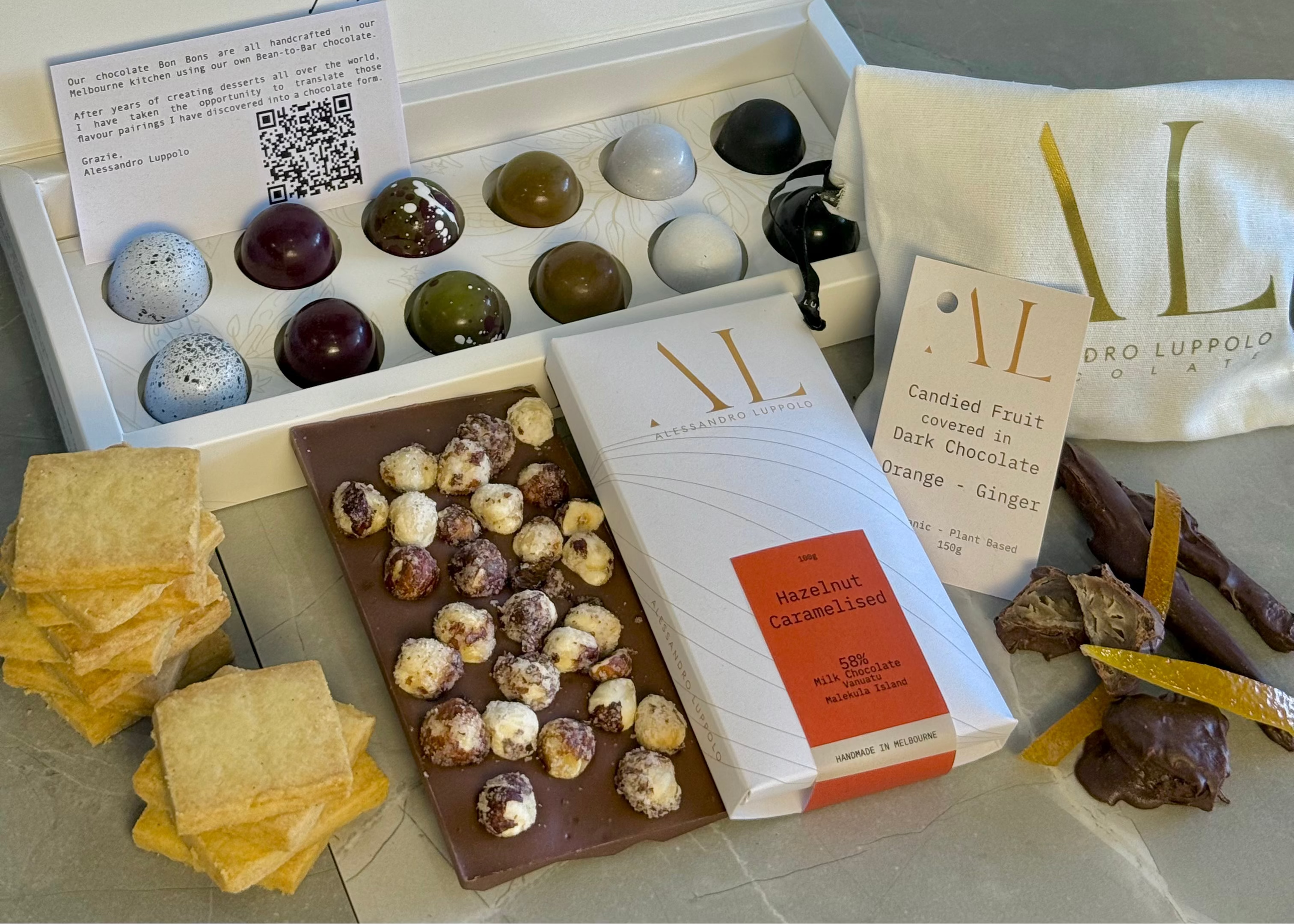 Our Chocolate Bon Bons are all handcrafted in our Melbourne kitchen using our Bean-to-bar chocolate. After years of creating desserts all over the world, I have taken the opportunity to translate those flavour pairings I have discovered into a chocolate form.